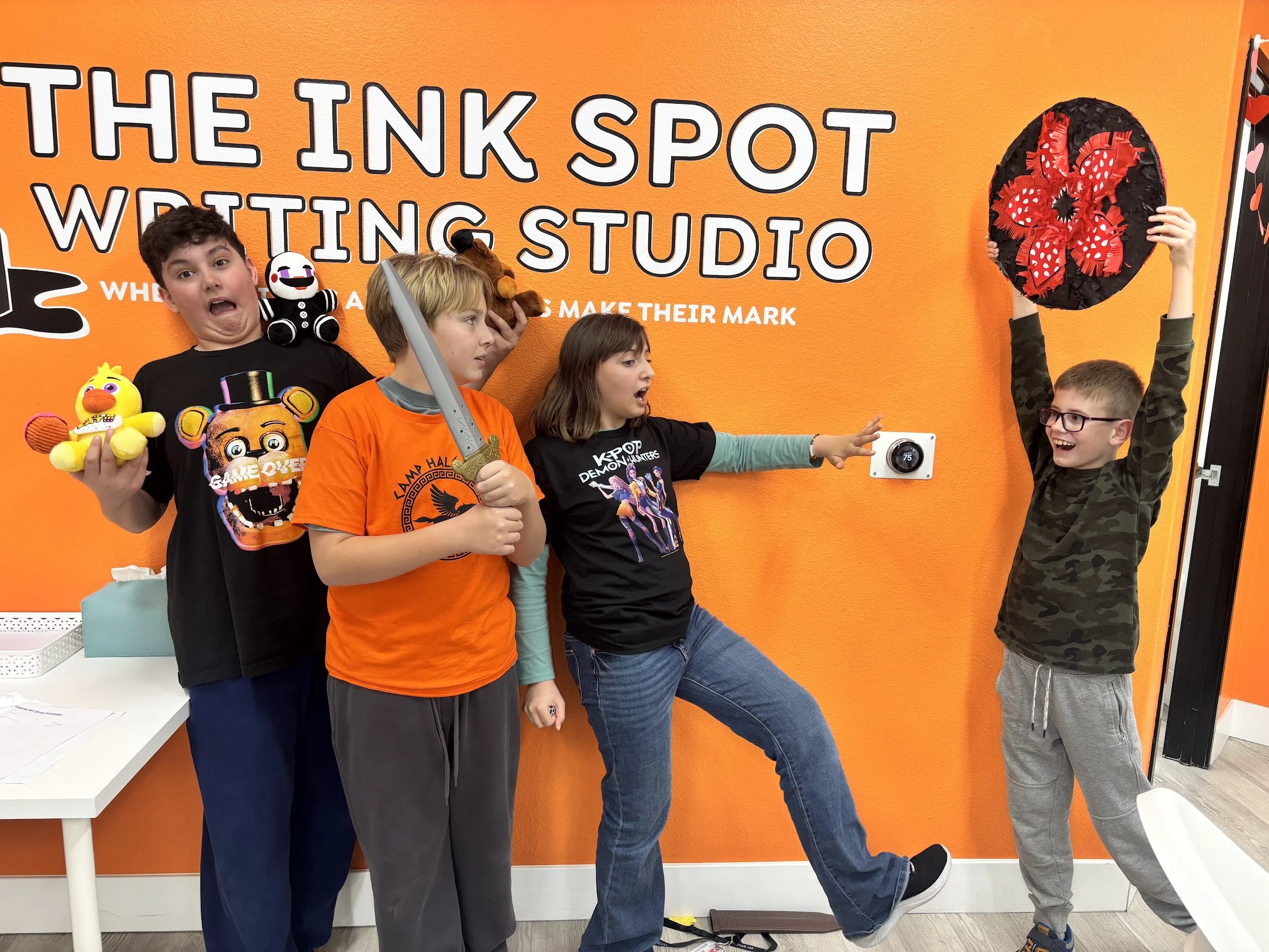 We're goin' up, up, up, it's our moment to celebrate being half-blood demi-gods, k-pop singing demon hunters, lore-hunting security guards on the night shift, and Hawkins residents surviving the upside down. In these five nights days at The Ink Spot, you'll fly your fan flag high and enjoy writing fan fiction from these fandoms and any other books, movies, and tv shows that inspire you.